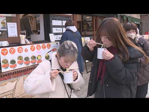 伊香保温泉 立ち食いスタイルで楽しむ新メニュー 群馬・渋川市(26/02/17)って温泉って世界的に人気だぞ